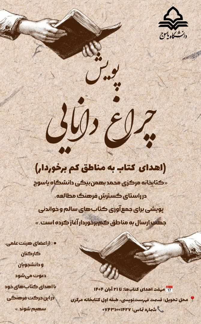 در هفته کتاب و کتابخوانی پویش چراغ دانایی در دانشگاه یاسوج برگزار شد .